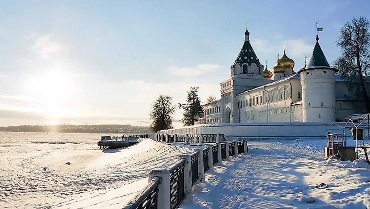 За умиротворенной атмосферой надо ехать в Кострому. Этот небольшой провинциальный город встречает гостей заснеженными улицами, старинной архитектурой, зимними забавами и горячими напитками на новогодних ярмарках. Главной архитектурной достопримечательностью Костромы является Ипатьевский мужской монастырь, в котором избрали первого царя из династии Романовых.