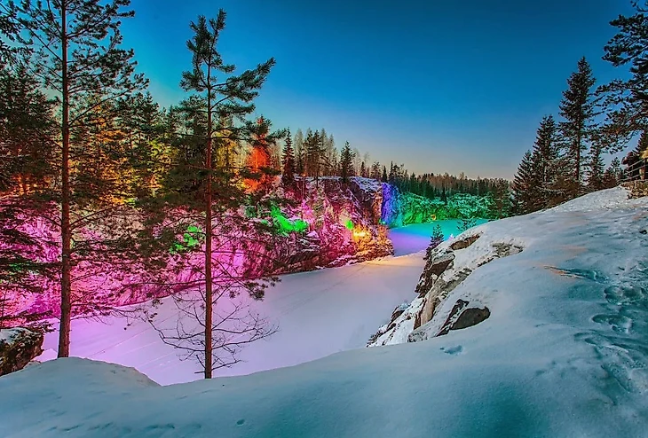 1 января вы посетите вотчину карельского Деда Мороза. Здесь туристов ждет встреча с дружелюбными хаски, прогулка по оленьей ферме и зимние забавы. 2 января вы посетите одну из самых главных достопримечательностей региона — горный парк «Рускеала», в центре которого находится Мраморный каньон. Зимой в каньоне работает подсветка, что делает его еще более впечатляющим.