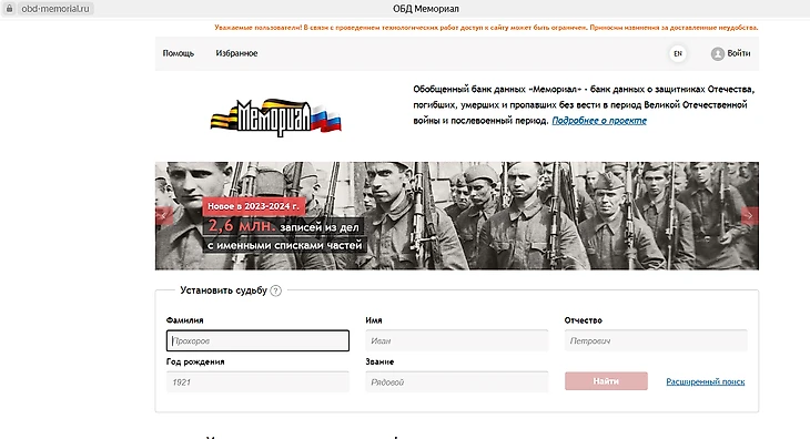 Мемориал — обобщенный банк данных о защитниках Отечества, погибших и пропавших без вести. Важный источник информации для интересующихся судьбами конкретных людей.