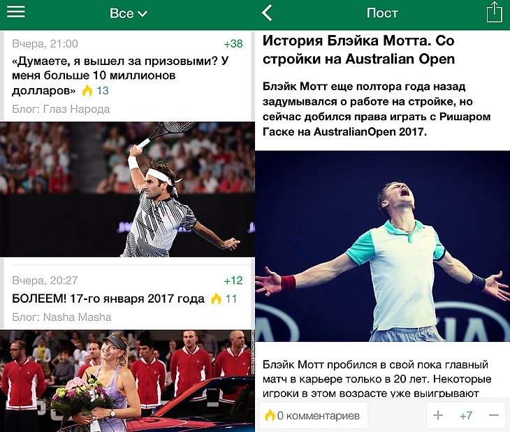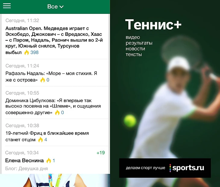 Приложение «Теннис» – это все матчи Australian Open и других турниров Большого шлема, результаты, статистика, аналитика, новости о любимых спортсменах, интервью, мнения экспертов.