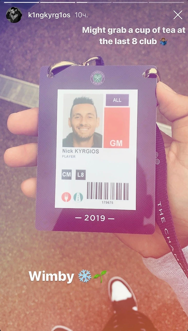 Сегодня 24-летний австралиец запостил фото своей турнирной аккредитации с пометкой L8 (last 8), означающей доступ в зоны, отведенные только для тех, кто играл на «Уимблдоне» в четвертьфинале («Может, выпью чайку в клубе четвертьфиналистов»). Кириос, напомним, дошел до этой стадии в свой турнирный дебют в 2014-м (в 19 лет обыграл №1 Надаля, проиграл Раоничу).