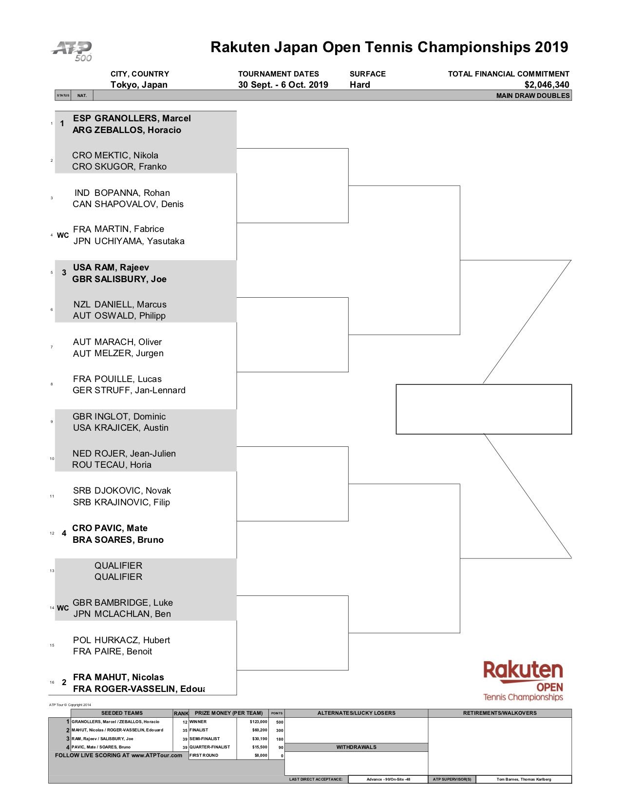 Серб сыграет в паре с Филипом Краиновичем, и в первом круге они встретятся с четвертыми сеяными Мате Павичем и Бруно Суаресом.