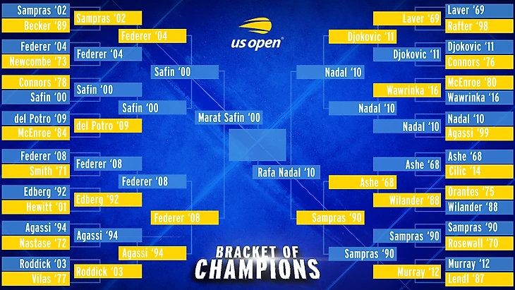 В турнире, состоящем из серии опросов, стартовало 32 победителя US Open. Роджер Федерер, Андре Агасси, Пит Сампрас, Джон Макинрой и Джимми Коннорс попали в сетку дважды с чемпионствами разных лет.