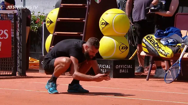 Француз Бенуа Пэр во время матча со Стефано Травальей в первом круге «Мастерса» в Риме (4:6, 3:6) получил предупреждение за то, что сфотографировал отметку на корте.