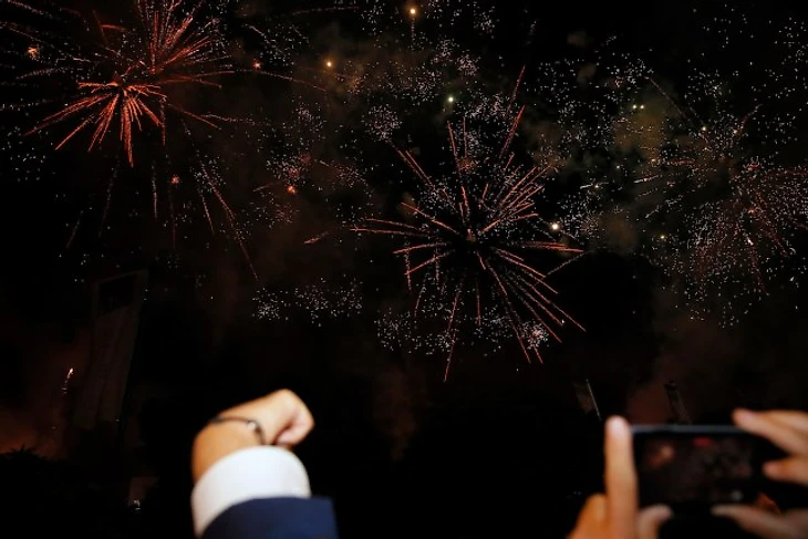 Джокович в окружении семьи, друзей и болельщиков посмотрел салют, а также показал всем маленькую копию трофея «Ролан Гаррос».