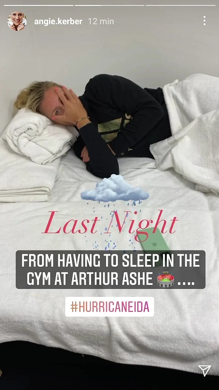 Немка должна была в среду провести вечерний матч, но из-за проблем с крышей над кортом его перенесли на четверг. А поскольку из-за урагана в Нью-Йорке встал транспорт, ей пришлось ночевать в тренажерном зале на территории US Open.