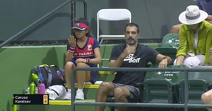 В первом сете Карацев случайно попал в лицо девочке, подающей мячи. Россиянин отбивал подачу итальянца, не попавшую в квадрат.