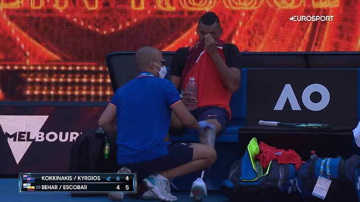 В концовке второго сета Кириос взял медицинский перерыв. Ему намазали мазью левое колено. Из-за проблем с коленом он досрочно завершил прошлый сезон.