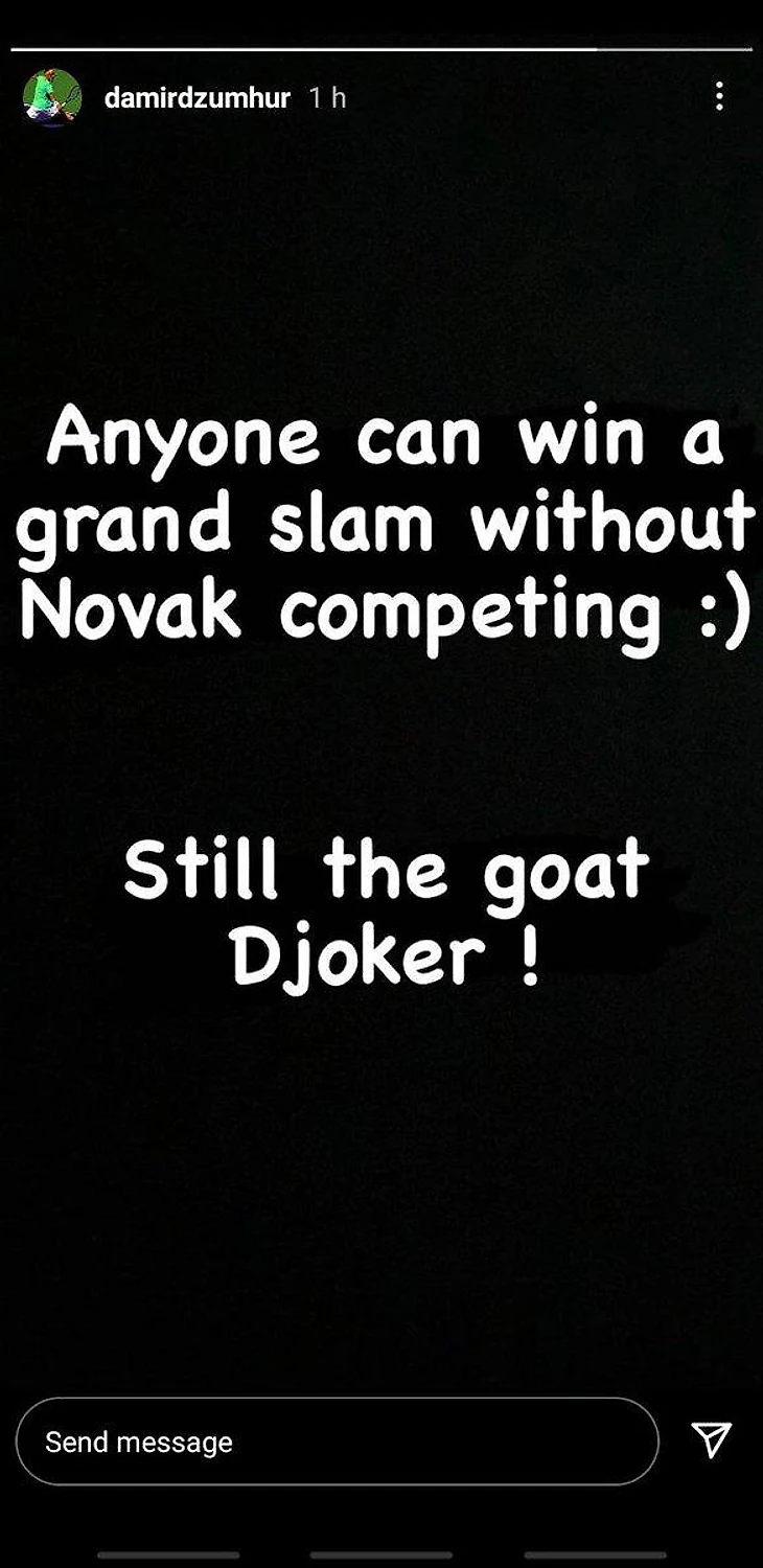 161-я ракетка мира Дамир Джумхур, лаки-лузером проигравший в первом круге Australian Open, в сторис инстаграма прокомментировал историческую победу на турнире Рафаэля Надаля.