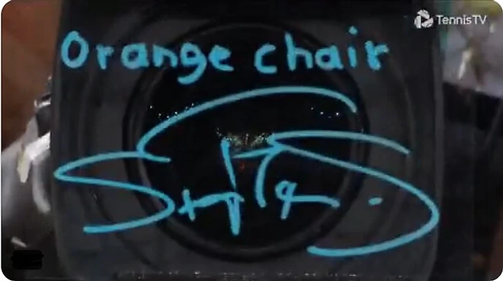 Пятая ракетка мира Стефанос Циципас объяснил надпись на камере после выхода в 1/2 финала в Мадриде. Грек написал «оранжевый стул», и его спросили, что это такое.