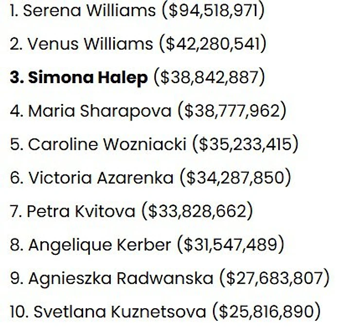 Халеп обошла Шарапову и вышла на третье место по призовым