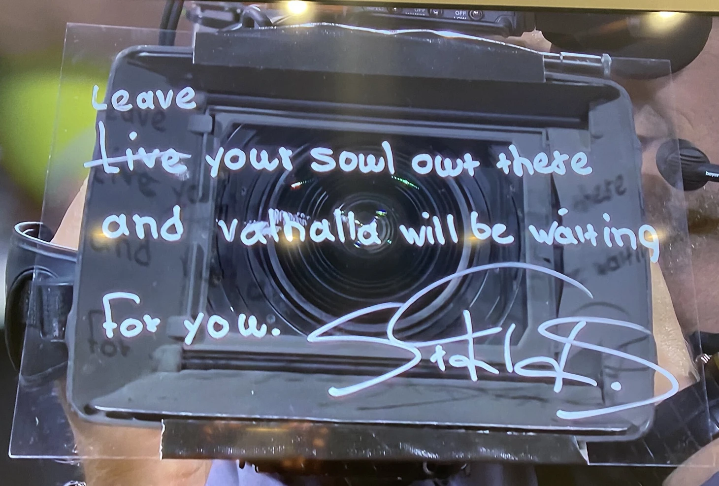 Вместо автографа на камере грек написал: «Отдай все душевные силы, и тебя будет ждать Вальхалла».