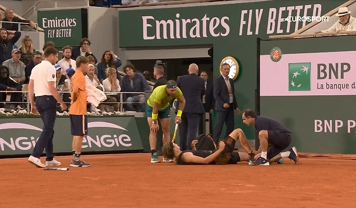 Александр Зверев получил травму в полуфинале «Ролан Гаррос» против Рафаэля Надаля.
