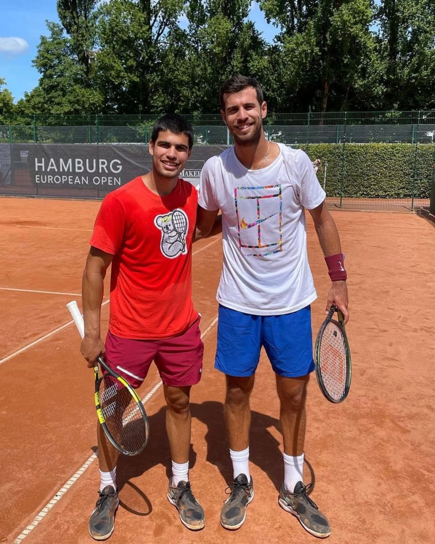 «Продолжаю готовиться к дебюту в Гамбурге 🔨🥵. Хорошая тренировка, Карен 😏», – написал Алькарас.