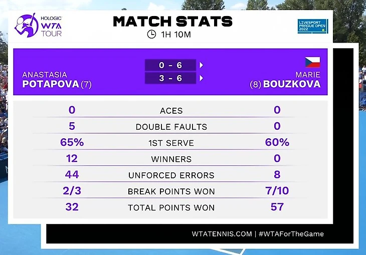 Бузкова не сделала ни одного виннерса в финале в Праге. У Потаповой – 44 невынужденных ошибки