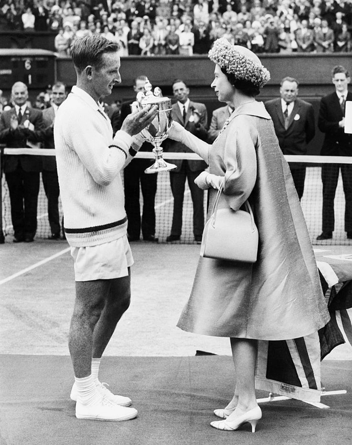 Род Лэйвер опубликовал фото, на котором Королева Великобритании вручает ему трофей «Уимблдона»-1962.