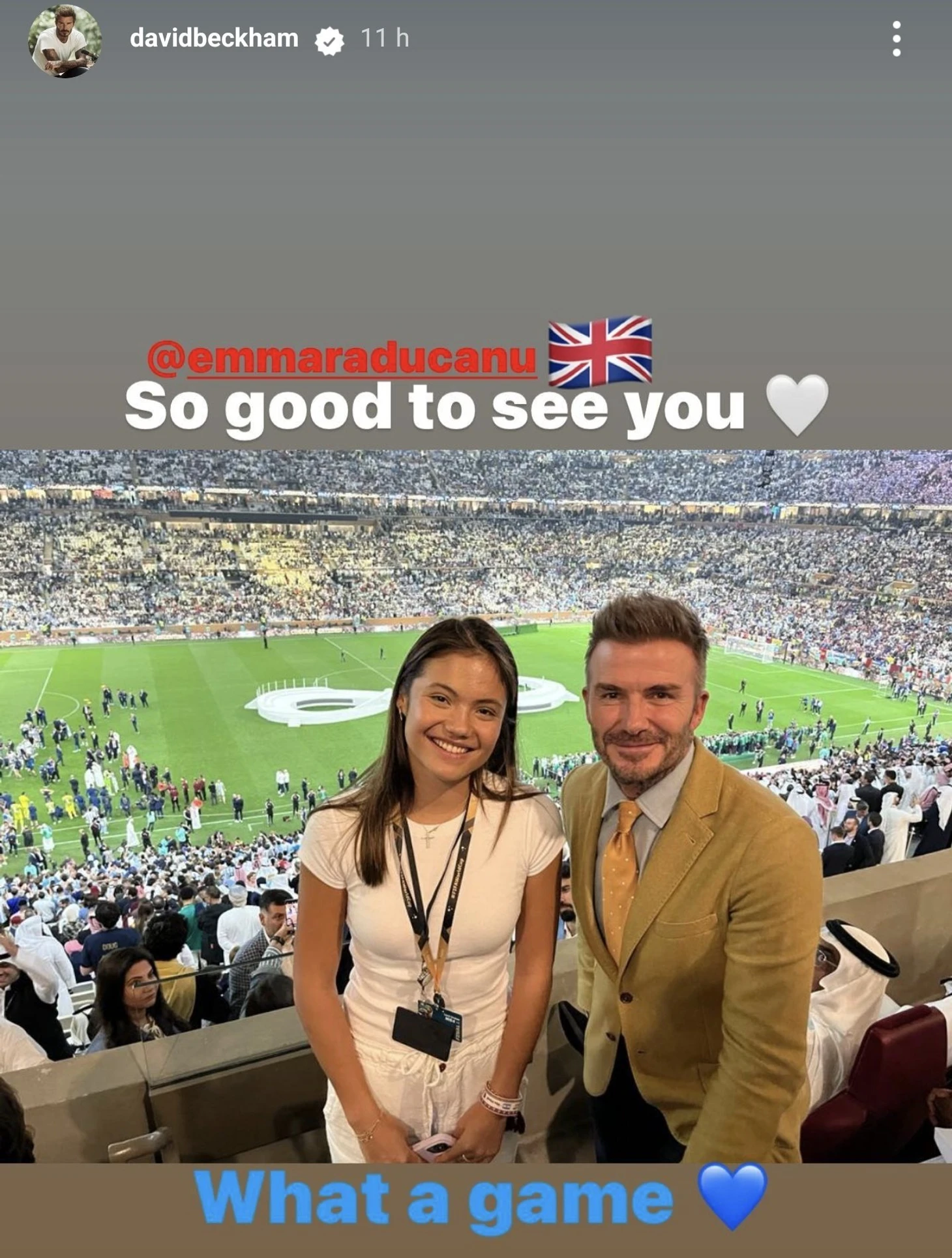 Дэвид Бекхэм сфотографировался с Эммой Радукану на финале ЧМ-2022.