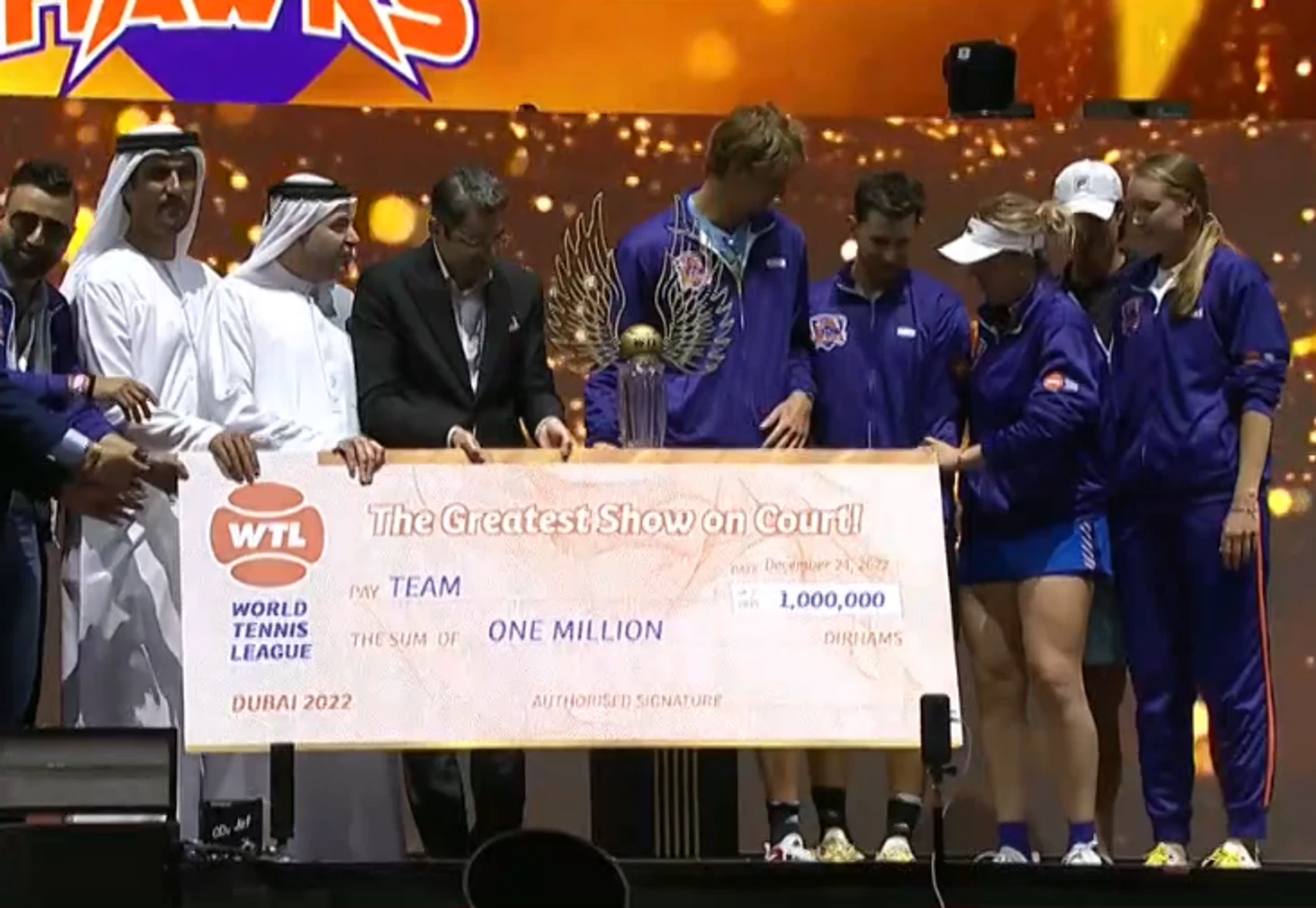 Анастасия Павлюченкова, Елена Рыбакина, Александр Зверев и Доминик Тим стали победителями командного выставочного турнира в Дубае.