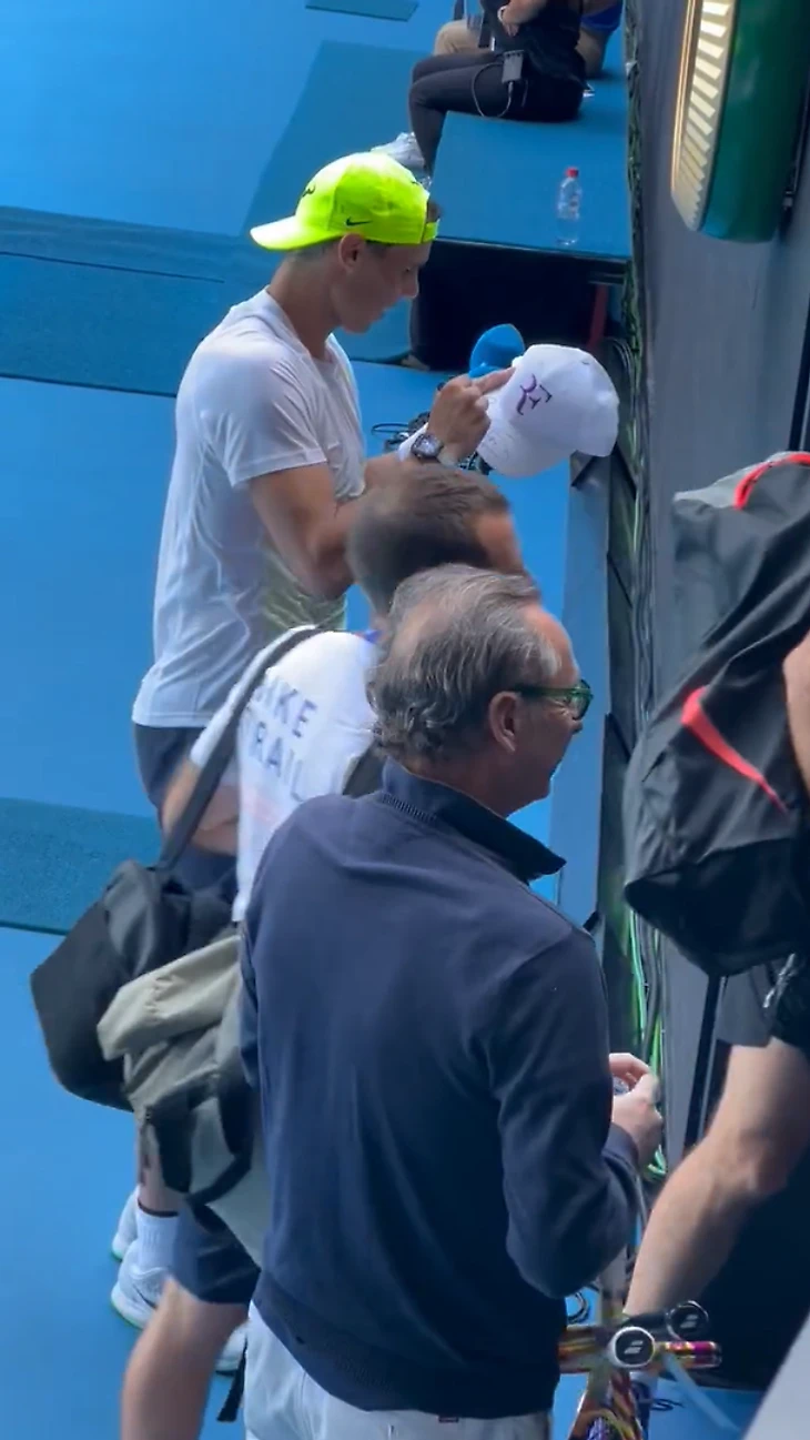 Надаль в Мельбурне оставил автограф на кепке с логотипом Федерера