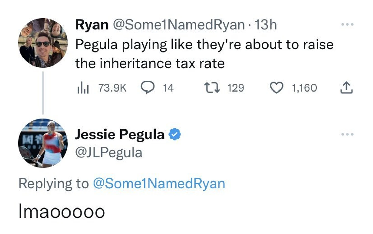 Пользователь по имени Райан твитнул: «Пегула играет так, будто скоро повысят налог на наследство».