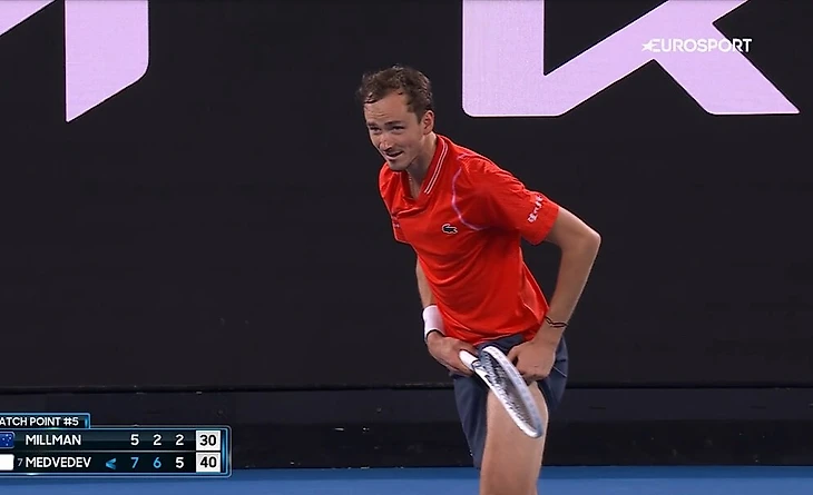 Даниил Медведев рассказал, почему показал бедро после победы во втором круге Australian Open. Он обыграл Джона Миллмана – 7:5, 6:2, 6:2.