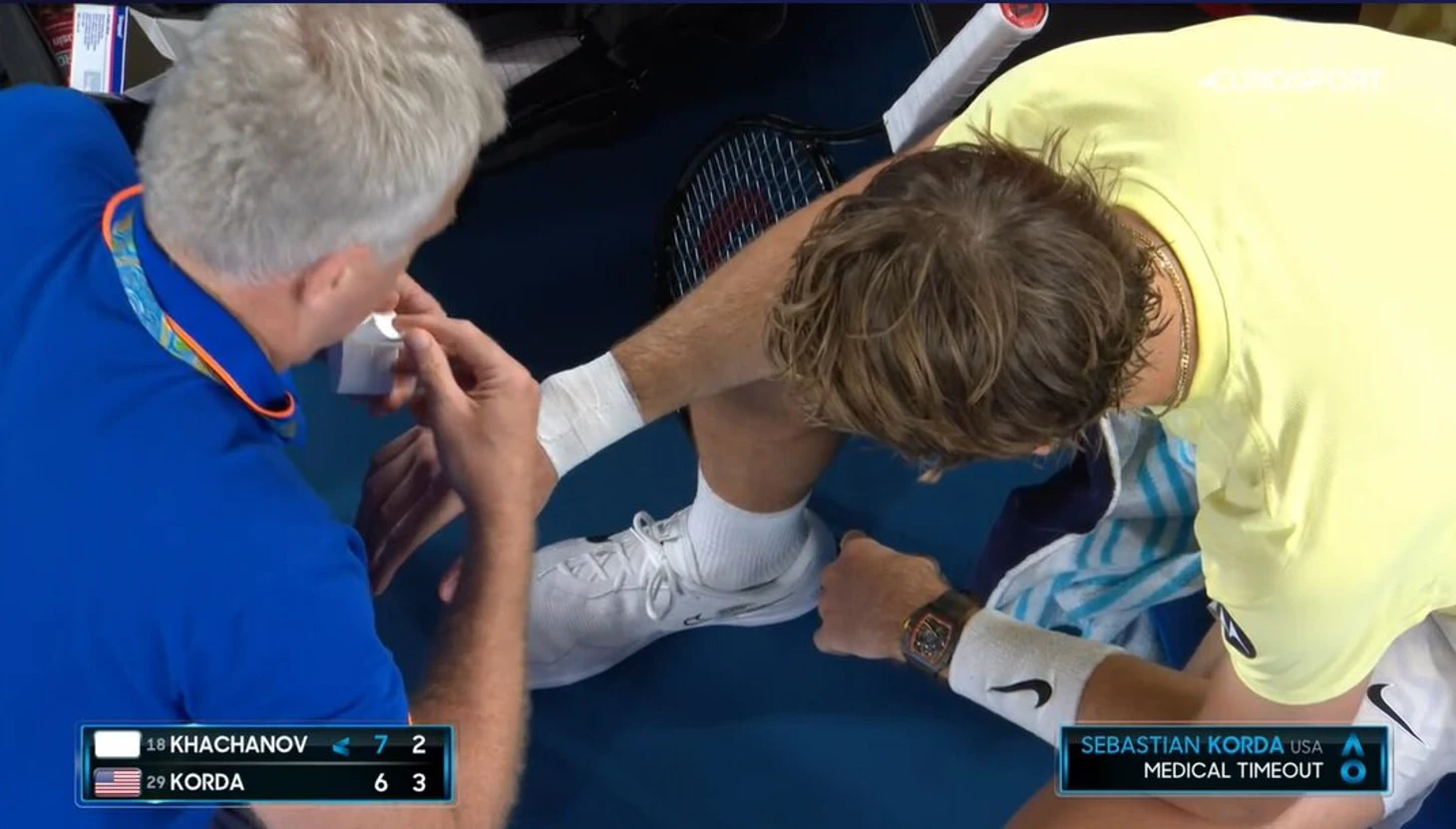 Себастьян Корда вызвал врача на корт в четвертьфинале Australian Open против Карена Хачанова.