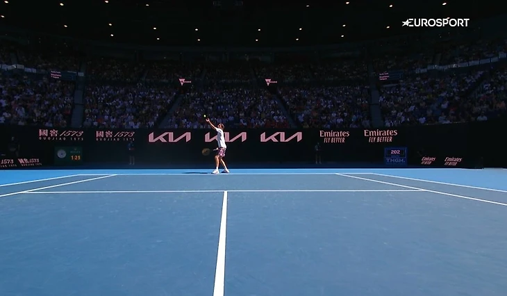 «Оказалось, что был небольшой зашаг со стороны центральной линии между счетом 40:40 и «больше» [в восьмом гейме второго сета]. С такой точки зрения был зашаг, в теннисе это редкость. Обычно его фиксируют, когда наступаешь на линию.