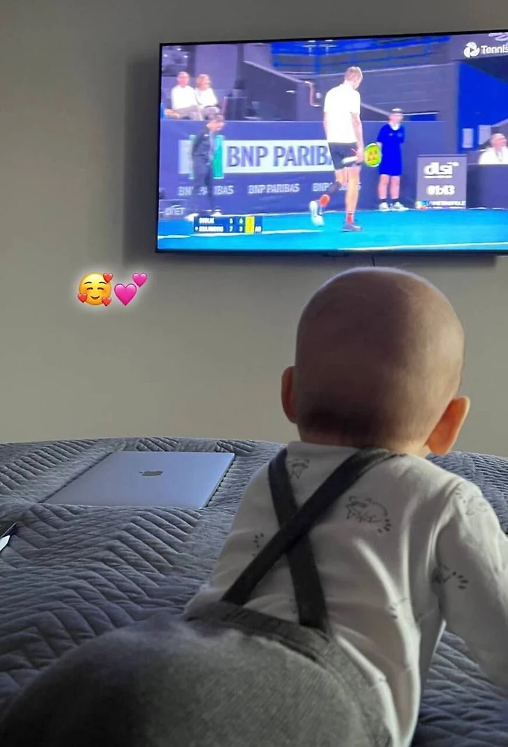 Александр Бублик показал, как его полугодовалый сын смотрел его матч в Марселе против Филипа Краиновича (5:7, 6:4, 6:3).