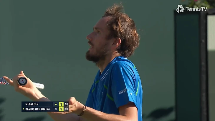 В итоге Медведев проиграл тот гейм, а после него получил предупреждение за неспортивное поведение – за плевок.