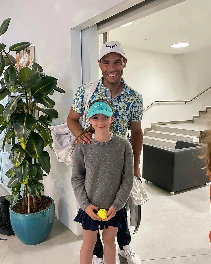 Рафаэль Надаль сфотографировался с дочкой Робина Содерлинга Оливией на юниорском турнире в своей академии на Мальорке.