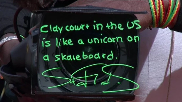 После победы он вместо автографа на камере написал: «Грунтовый корт в США как единорог на скейтборде».