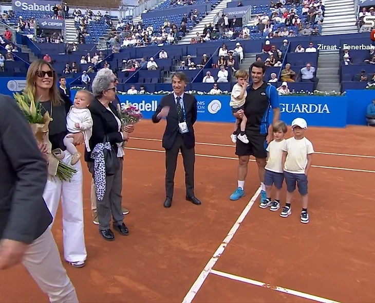После матча он пригласил на корт семью.