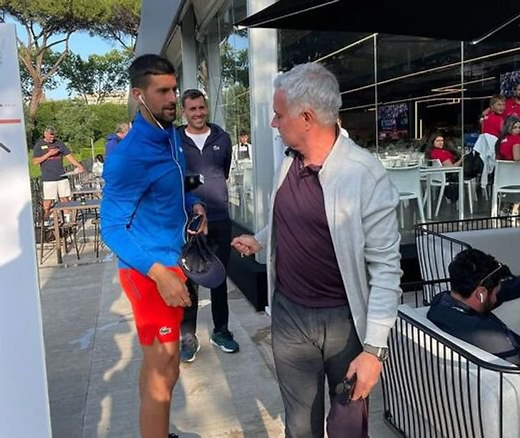 Главный тренер «Ромы» Жозе Моуринью пришел на матч Новака Джоковича против Томаса Мартина Этчеверри на «Мастерсе» в Риме.