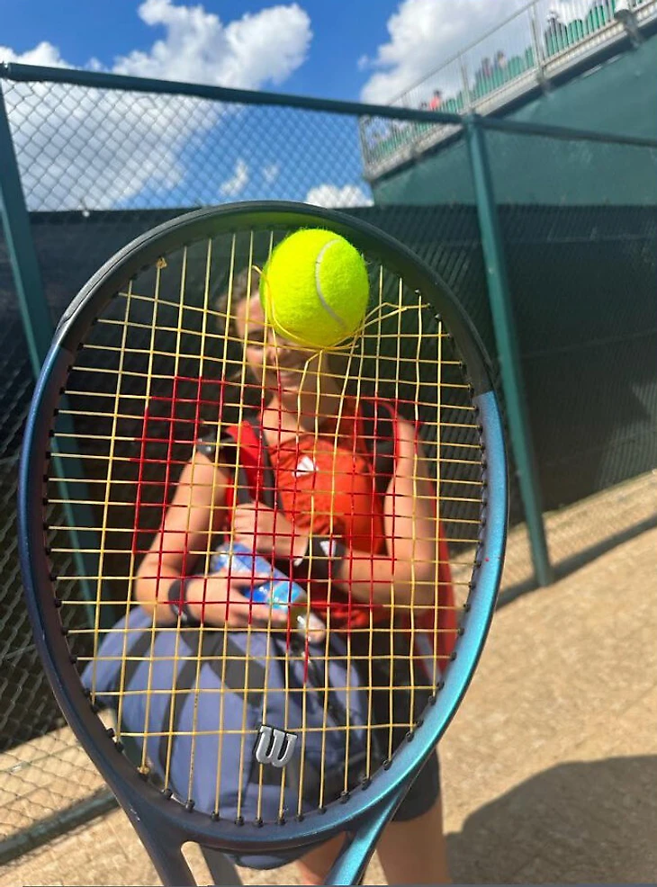 В парном матче в Ноттингеме мяч после удара застрял между струн ракетки Эйкери