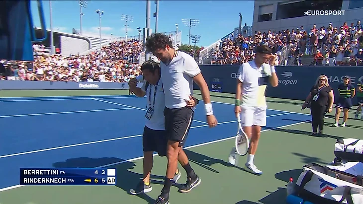 Врач помог Берреттини дойти до скамейки и начал оказывать помощь.