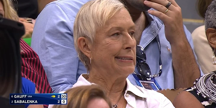 Также на матче присутствует 18-кратная чемпионка «Больших шлемов» Мартина Навратилова.