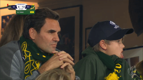 Федерер с семьей пришли в шарфах южноафриканской сборной. Его мама родом из ЮАР.