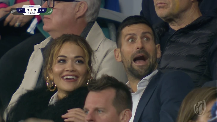 Роджер Федерер и Новак Джокович посетили финал Кубка мира по регби, где встречаются Новая Зеландия и ЮАР.