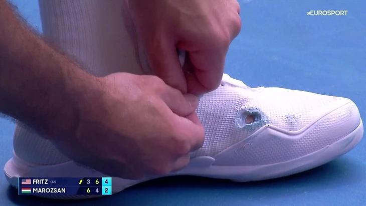 Тэйлор Фриц прокомментировал то, что у него порвались кроссовка и носок в третьем сете матча с Фабианом Марожаном на Australian Open (3:6, 6:4, 6:2, 6:2).