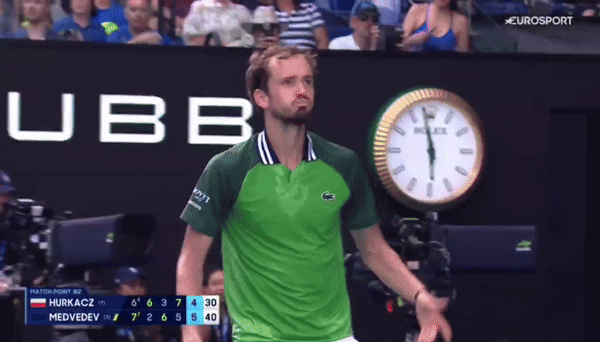 Даниил Медведев послал воздушные поцелуи своему боксу после победы над Хубертом Хуркачем на Australian Open (7:6(4), 2:6, 6:3, 5:7, 6:4).
