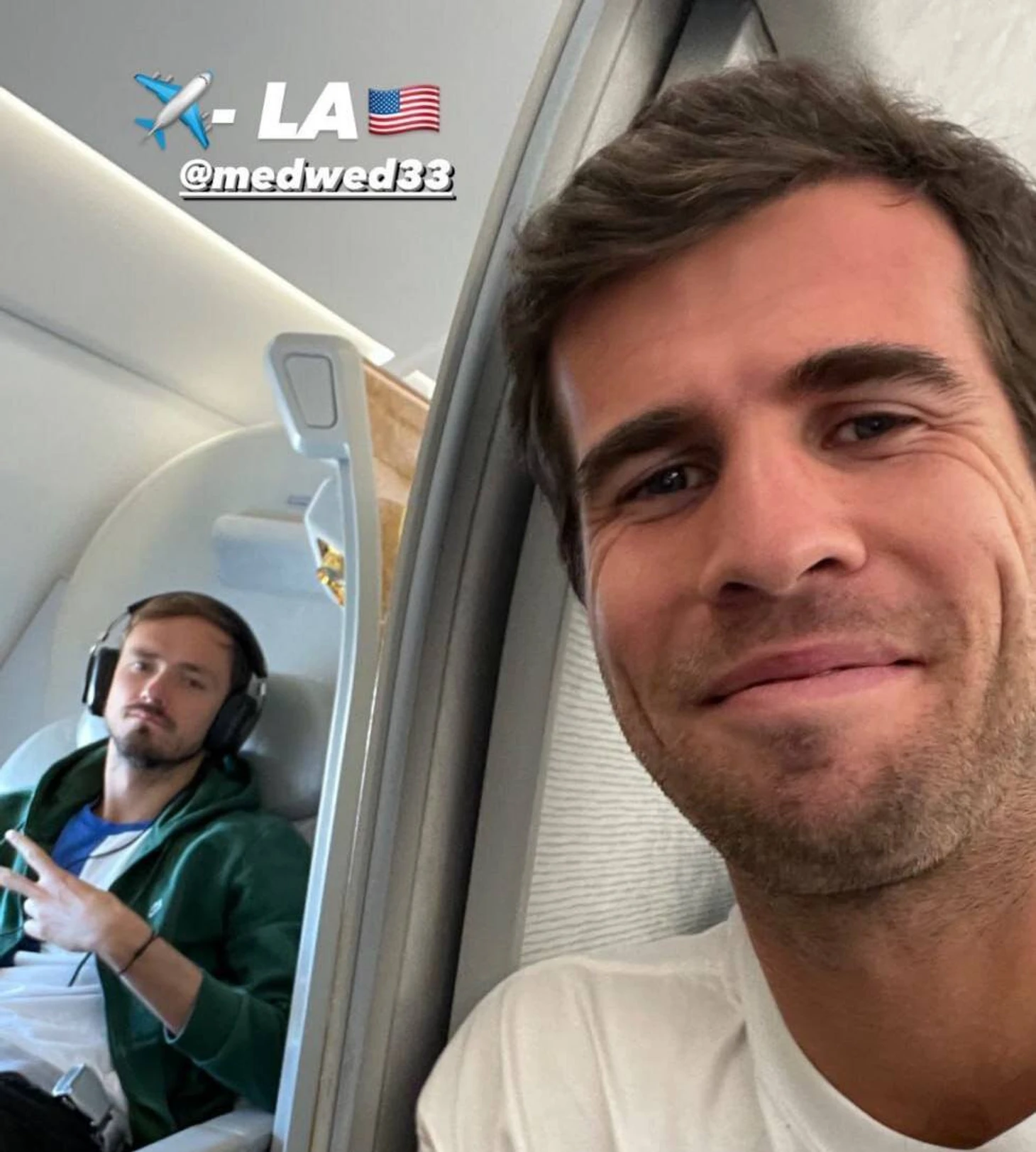 Карен Хачанов поделился фотографией с Даниилом Медведевым. Они вместе летят на «Мастерс» в Индиан-Уэллс.