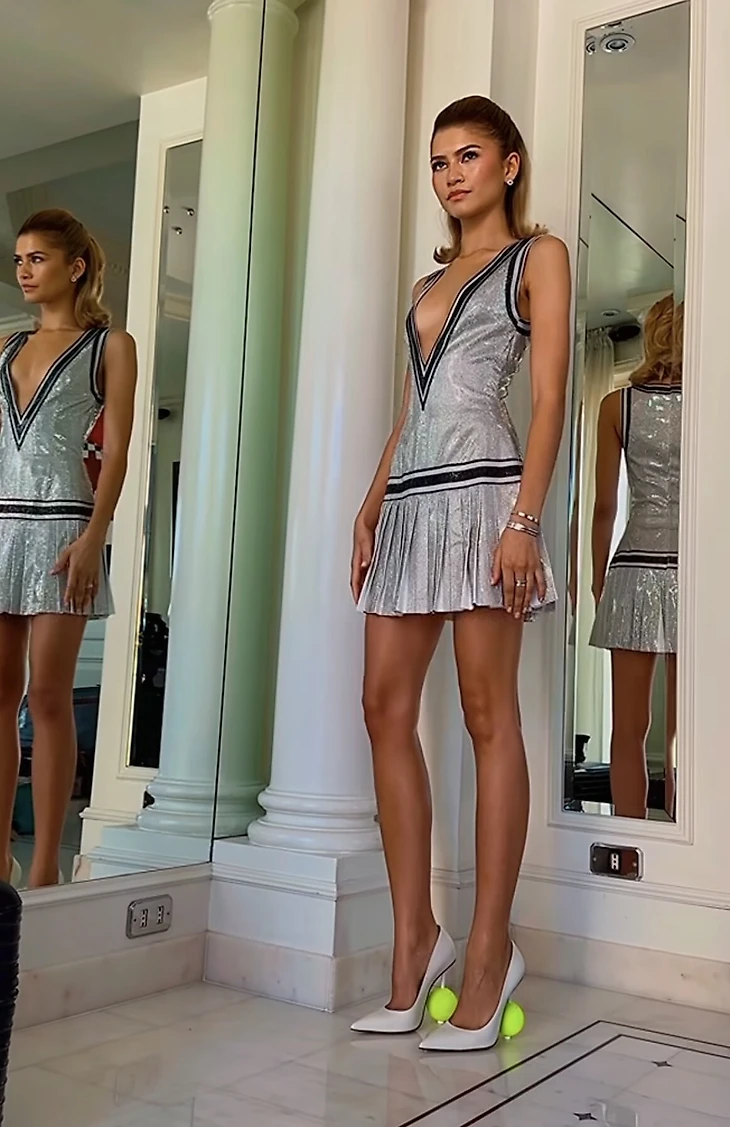 Зендая показала туфли с каблуками из теннисных мячиков