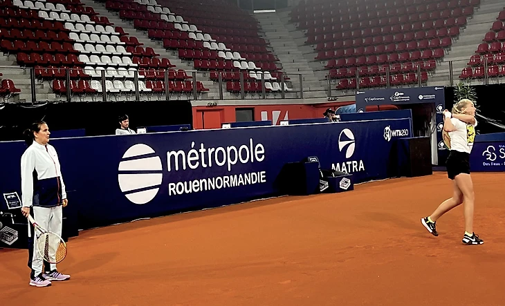 16-летняя Мирра Андреева в Руане работает с Кончитой Мартинес.