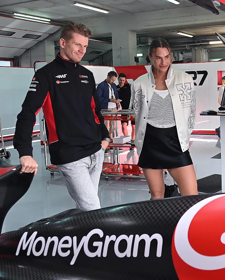 Вторая ракетка мира посетила боксы «Хаас». Там она встретилась с пилотами команды Кевином Магнуссеном и Нико Хюлькенбергом.