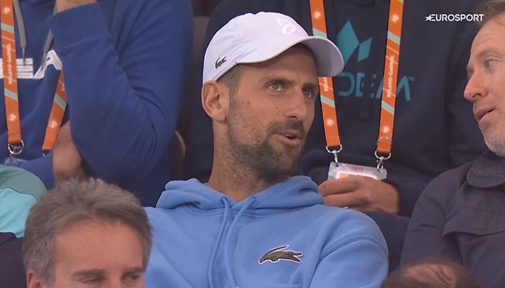Первая ракетка мира Новак Джокович пришел на трибуны на первый круг «Ролан Гаррос» между Рафаэлем Надалем и Александром Зверевым.