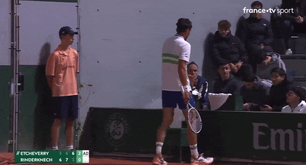 Артур Риндеркнеш в матче против Томаса Этчеверри во втором круге «Ролан Гаррос» при счете 6:3, 7:6(8), 1:6, 0:2 пнул рекламный щит.