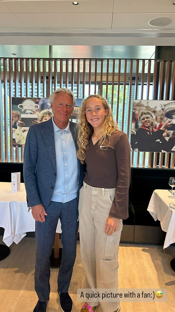 Мирра Андреева выложила фото с 11-кратным чемпионом «Больших шлемов» Бьорном Боргом.