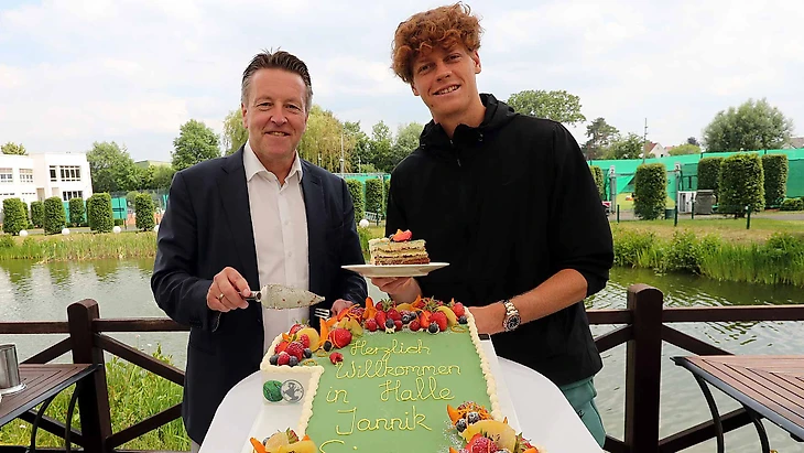 Организаторы турнира в Галле встретили Янника Синнера тортом в честь дебюта итальянца в статусе первой ракетки мира.