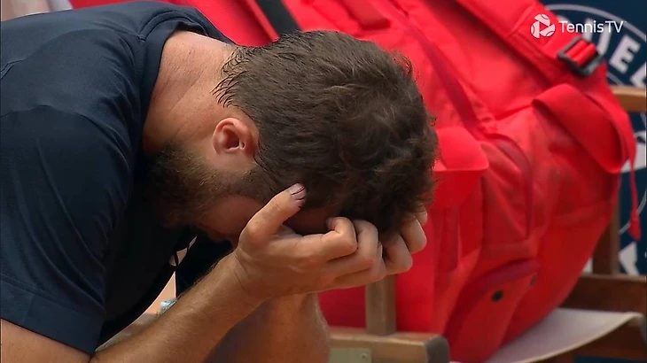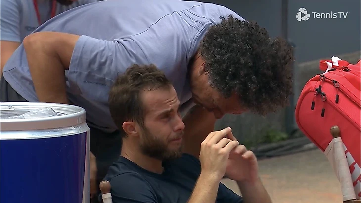Гастон заплакал в ожидании церемонии награждения. Тренер Юнис эль-Айнауи спустился к нему на корт, чтобы поддержать.