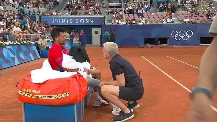 Во втором сете Джокович проигрывал 0:4. При счете 3:5 он ушел с тройного сетбола. Уступая, серб вызвал на корт физио из-за проблем с прооперированным коленом.